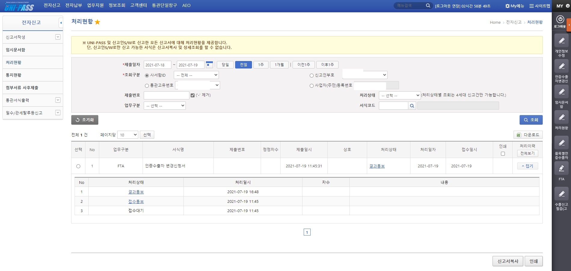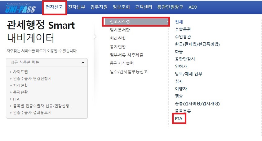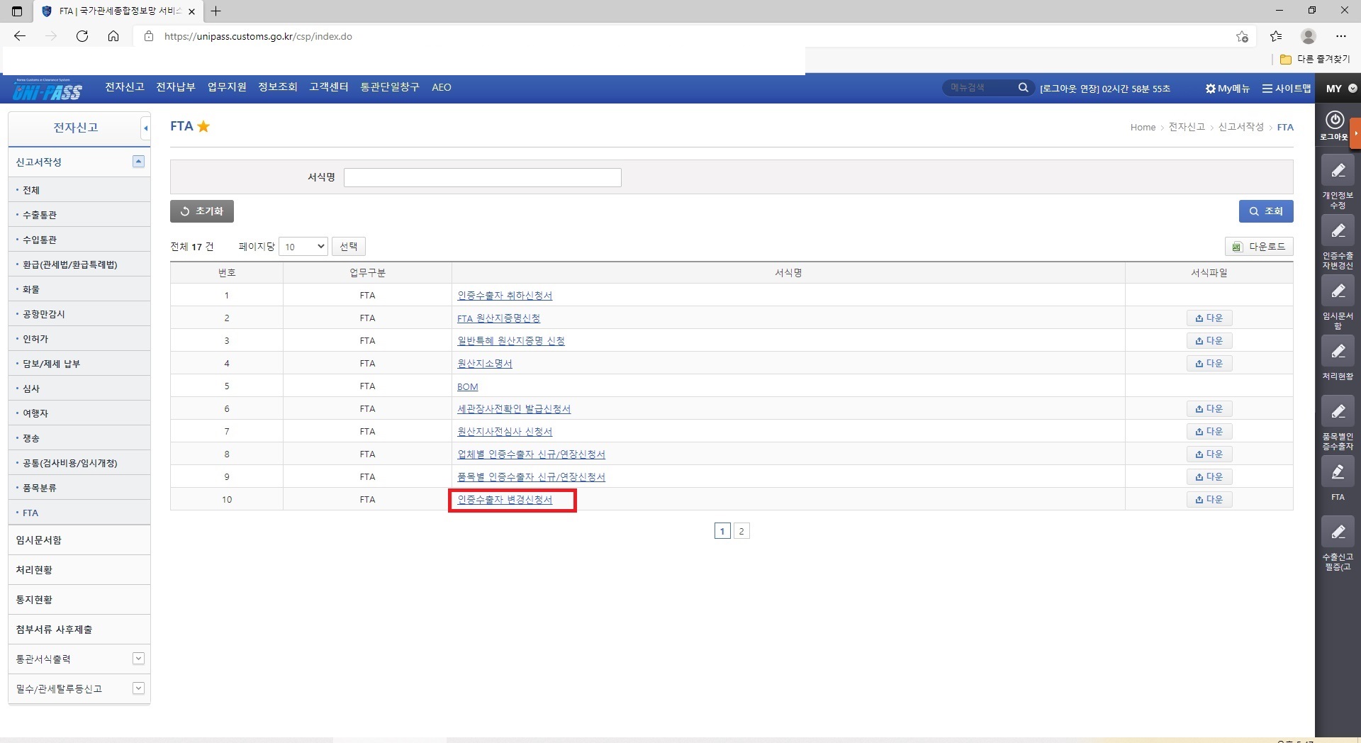 유니패스에서 FTA 인증수출자 변경신청하는 방법