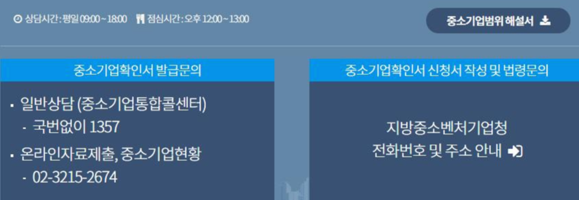 중소기업여부 자가진단 (법인기업) : http://sminfo.mss.go.kr/sc/sa/SSA001R1.do