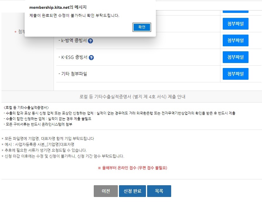 그나마 올해부터 온라인접수로 바뀌어서 우편접수는 필요없다. 이렇게 온라인으로 정보 입력하고 중간중간 임시저장도 해주고.... 실적같은 것은 직수출이라그런지 정보가 바로 불러와서 계산할 필요 없어서 편하고 좋았다.