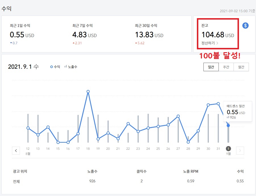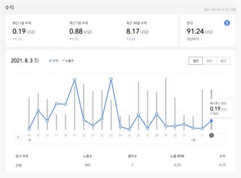 구글 애드센스 실적 반영일자가 궁금하다