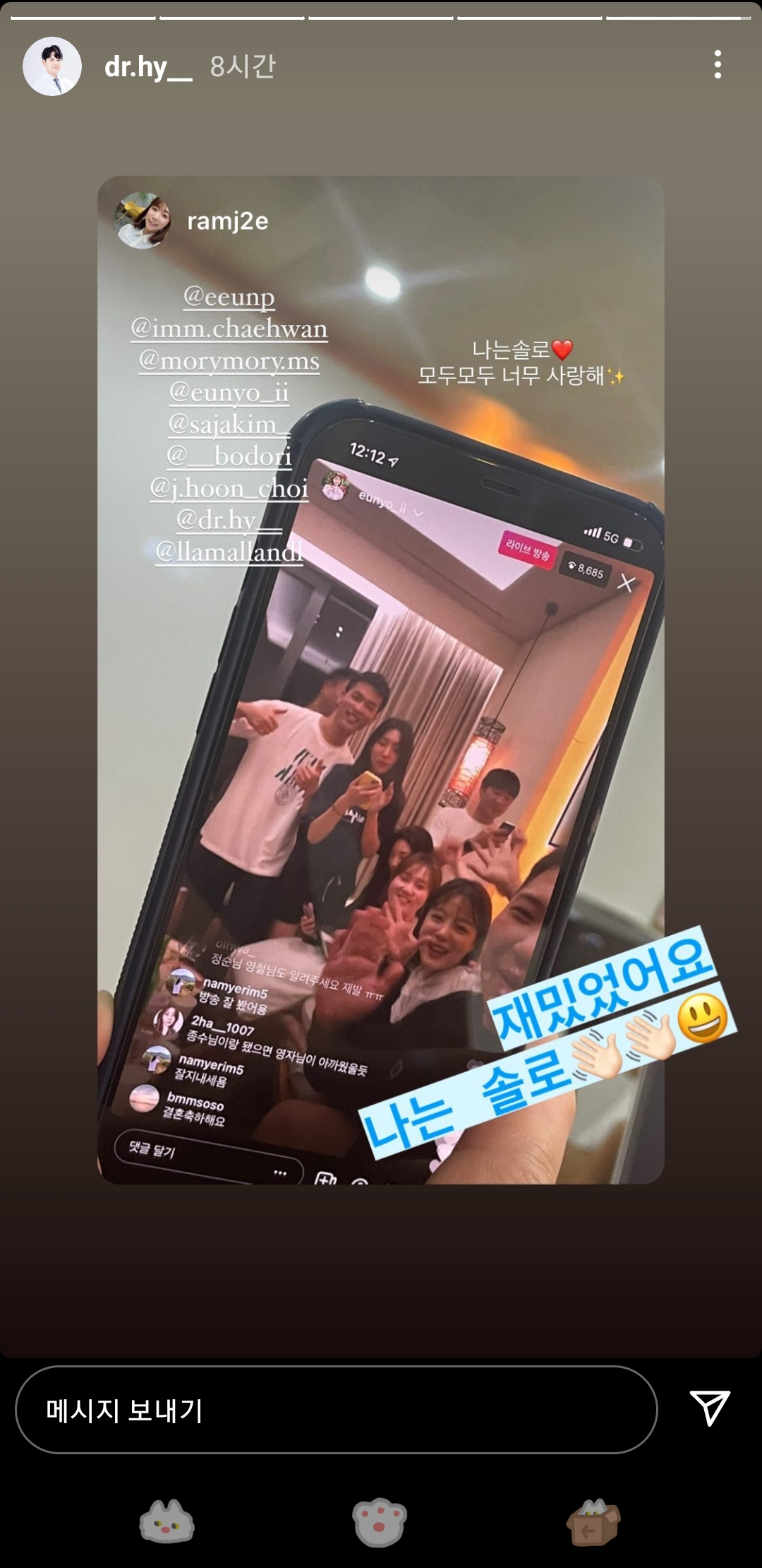 마지막 방송 끝나고나니 인스타라이브도 하길래 저녁에 보며 여운을 즐겼다.