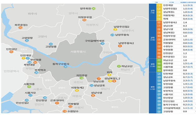 전체 물량에서 41.2%에 달하는 4200가구는 신혼부부를 위한 신혼희망타운* 물량이다. 지구별로 보면 성남낙생(900가구), 성남복정2(600가구), 군포대야미(1000가구), 의왕월암(800가구), 수원당수(500가구), 부천원종(400가구) 등 6곳 물량은 모두 신혼희망타운으로 공급된다.