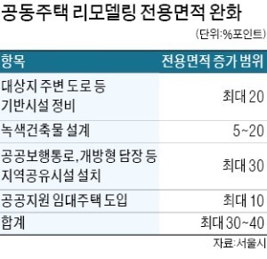 - 임대주택 의무화는 안하기로 : 다만 임대주택 도입은 리모델링 추진 단지 주민들의 반발이 심했어요. 따라서 임대주택 항목은 ‘의무화’가 아닌 ‘선택사항’으로 넣고, 임대주택 도입 시 최대 10% 포인트 전용면적을 늘릴 수 있도록 인센티브를 준다고 합니다.