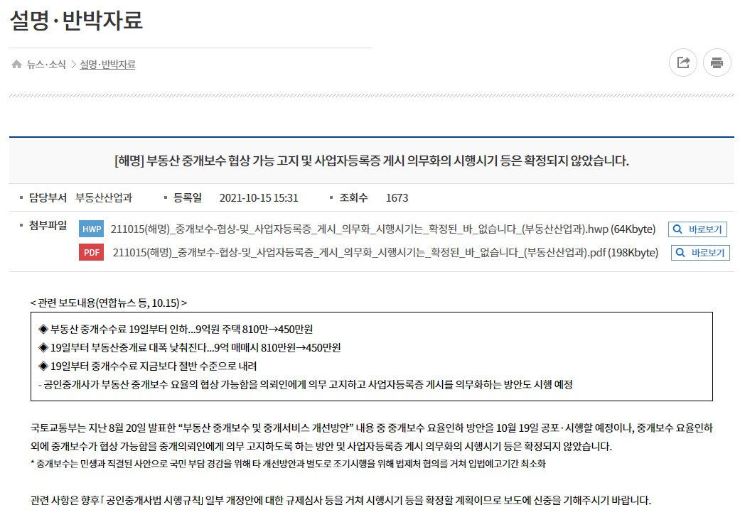 자세히 알아보려고 국토교통부 사이트에 확인해보니 보도해명자료 공지사항이 있더라.