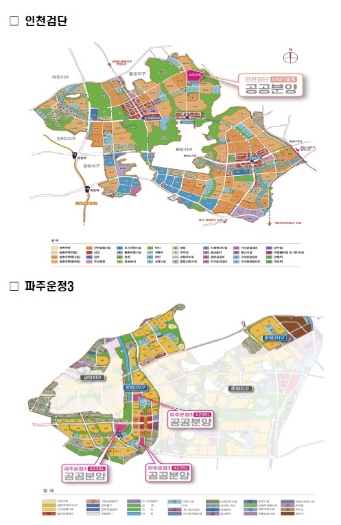 인천검단 지구는 자족형 신도시로서의 기능을 강화하기 위해 상업·교육문화·도시지원시설 비중을 높였으며, 사전청약으로 1개 블록에서 공공분양 천 2백호(전용 74m², 84m²)가 공급될 예정이다.