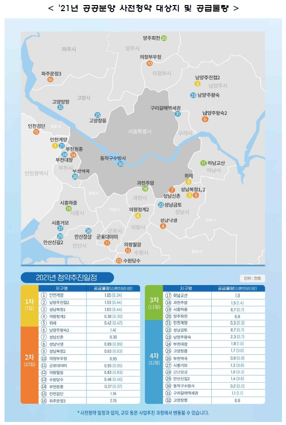 10월에는 3기 신도시인 남양주왕숙2 지구 1.4천호, 성남 신촌ㆍ낙생ㆍ복정2 등에서 1.8천호 등 총 1만여호가 공급될 예정이다.
