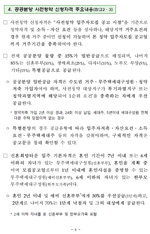 4. 공공분양 사전청약 신청자격 주요내용