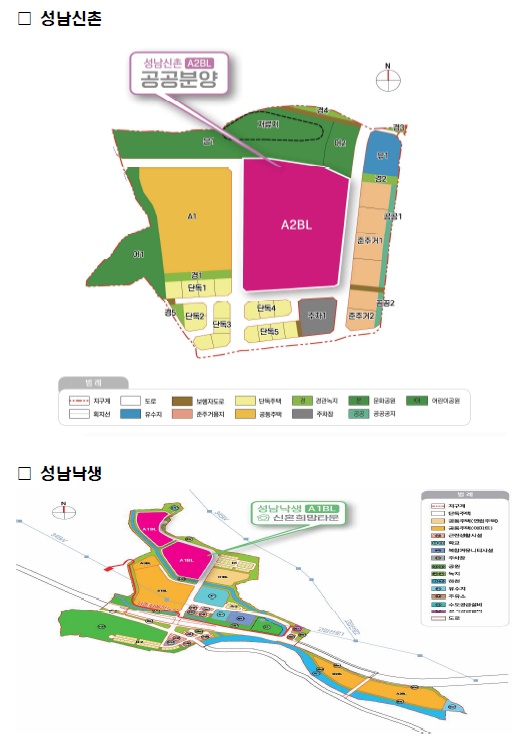 성남신촌 지구는 서울 강남구와 연접 위치하고 있으며, 기존 녹지 및 수변축과 연계되어 조성될 예정이며, 이번 사전청약으로 1개 블록(A2)에서 공공분양 3백호(전용 59m² 단일)가 공급될 예정이다.