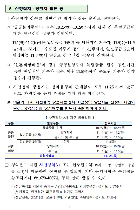 ‘신혼희망타운’의 경우 공공분양주택 특별공급 접수 동일기간 동안 해당지역 거주자 접수, 이후 11.5(금)까지 수도권 거주자 청약 접수가 진행된다.