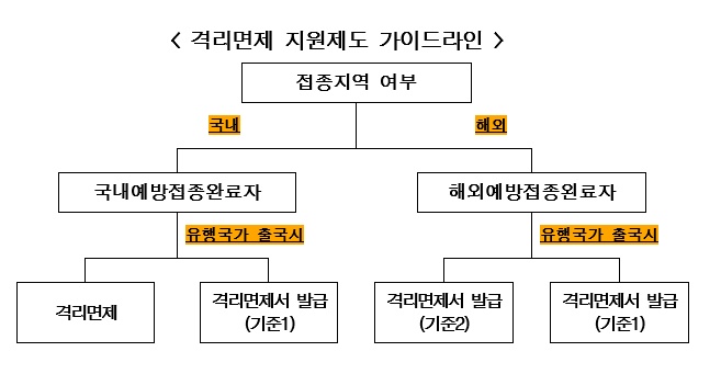 ※ 국내예방접종완료자는 국내 입국시 별도의 격리면제서 발급 절차 없이 격리면제 가능(’21.5.1~)