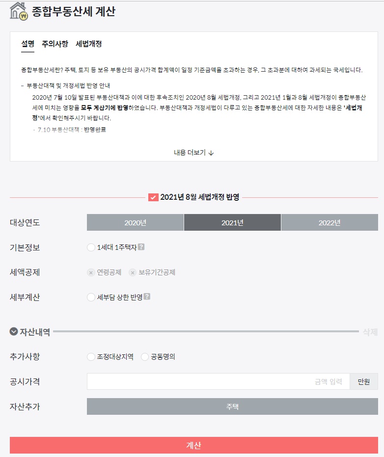 종합부동산세 계산 - 부동산계산기 (ezb.co.kr)