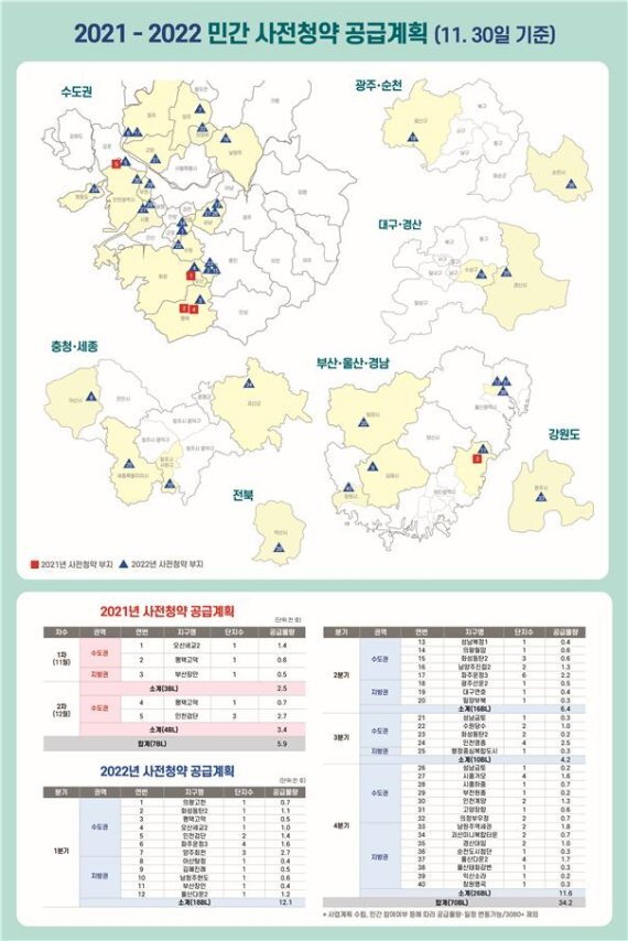 30일 국토부에 따르면 올해 두 차례에 걸쳐 공급되는 6000가구는 ▲오산세교2 1400가구 ▲평택고덕 600가구 ▲부산장안 500가구 ▲평택고덕 700가구 ▲인천검단 2700가구 등이다. 국토부는 이날 1차 민간 사전청약 모집 공고한 뒤 12월 중 3400가구 규모로 2차 사전청약을 실시할 방침이다.