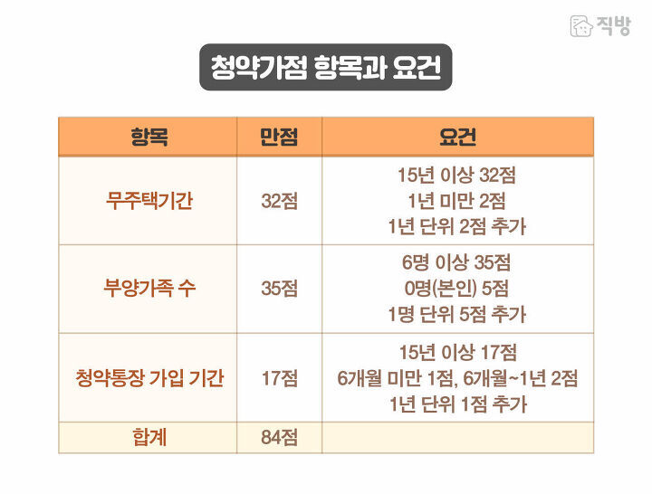 청약통장가입기간 15년 이상이면 만점(17점) 받을 수 있으므로 만 20세 이상이라면 미리 만들어둘것!