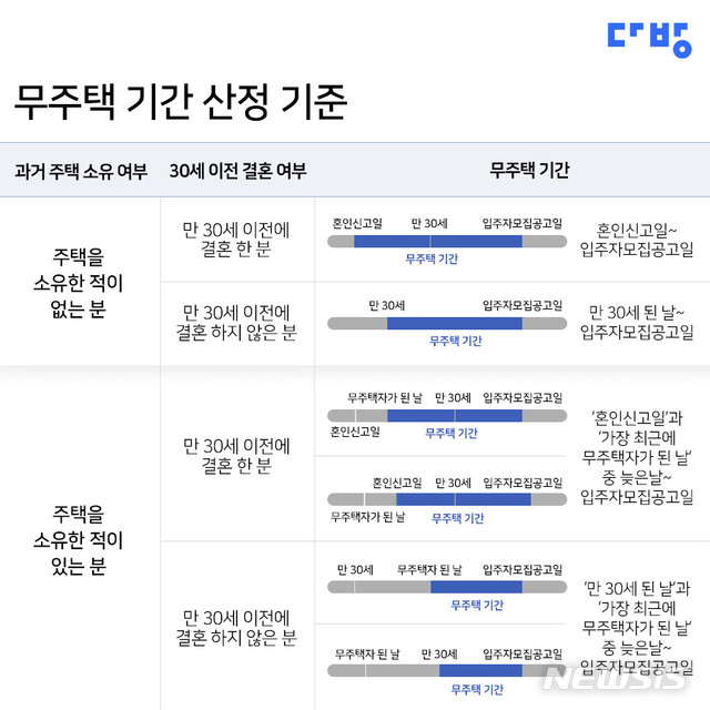 ㄴ예외적으로 만 30세 이전이라도 혼인한 경우 혼인신고일로부터 무주택 기간 산정해줌