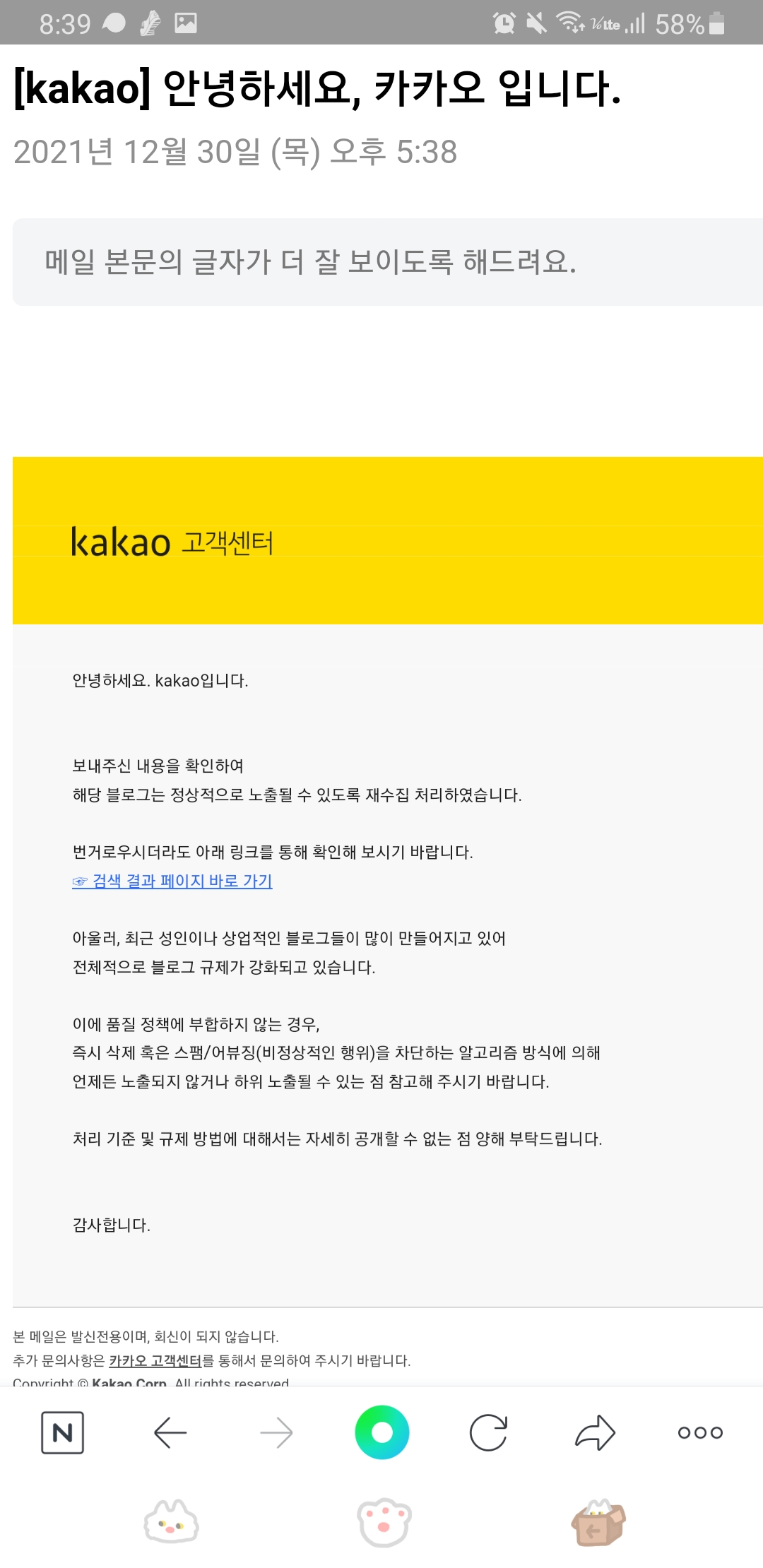 일단 저품질 의심되면 카카오 고객센터에 문의부터 해보는 것이 답인듯!!!