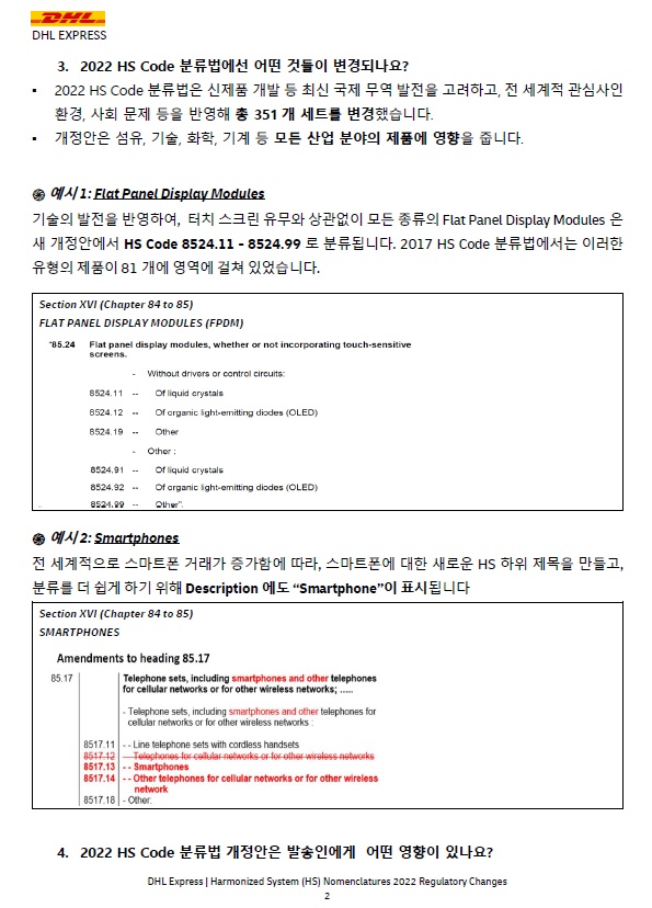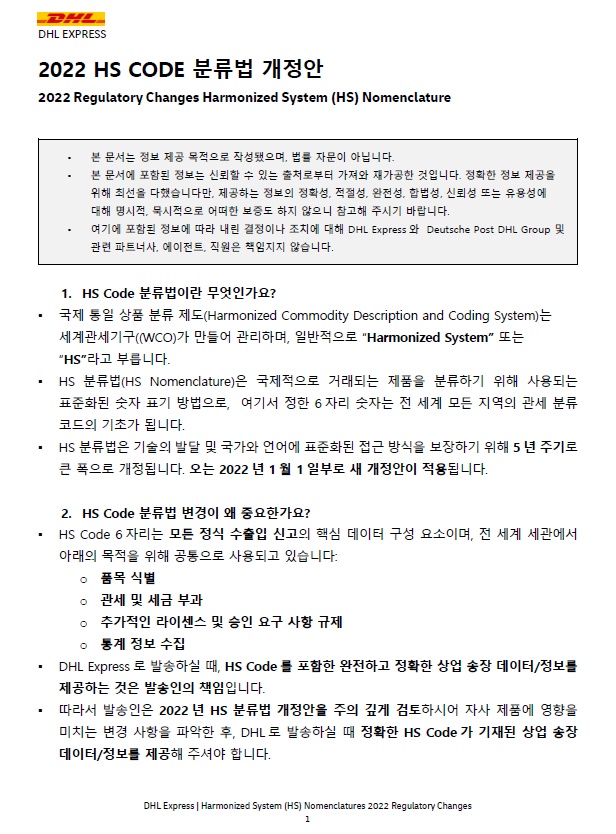 ü 그러나 DHL Express는 2022년 HS 분류 규정 변경에 대해 Shipper 와 협의할 수 없으며, 분류 과정을 지원할 수 없다는 점을 유의하십시오.