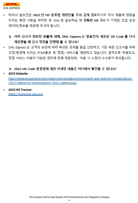 5. 새로운 분류법에 따라 DHL에서 HS code 분류를 대신 진행해 줄 수 있는지요?