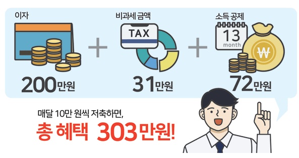 가입 기간이 2년이 지나면 최대 10년 동안 이자소득에 대해 500만원까지 비과세 혜택.