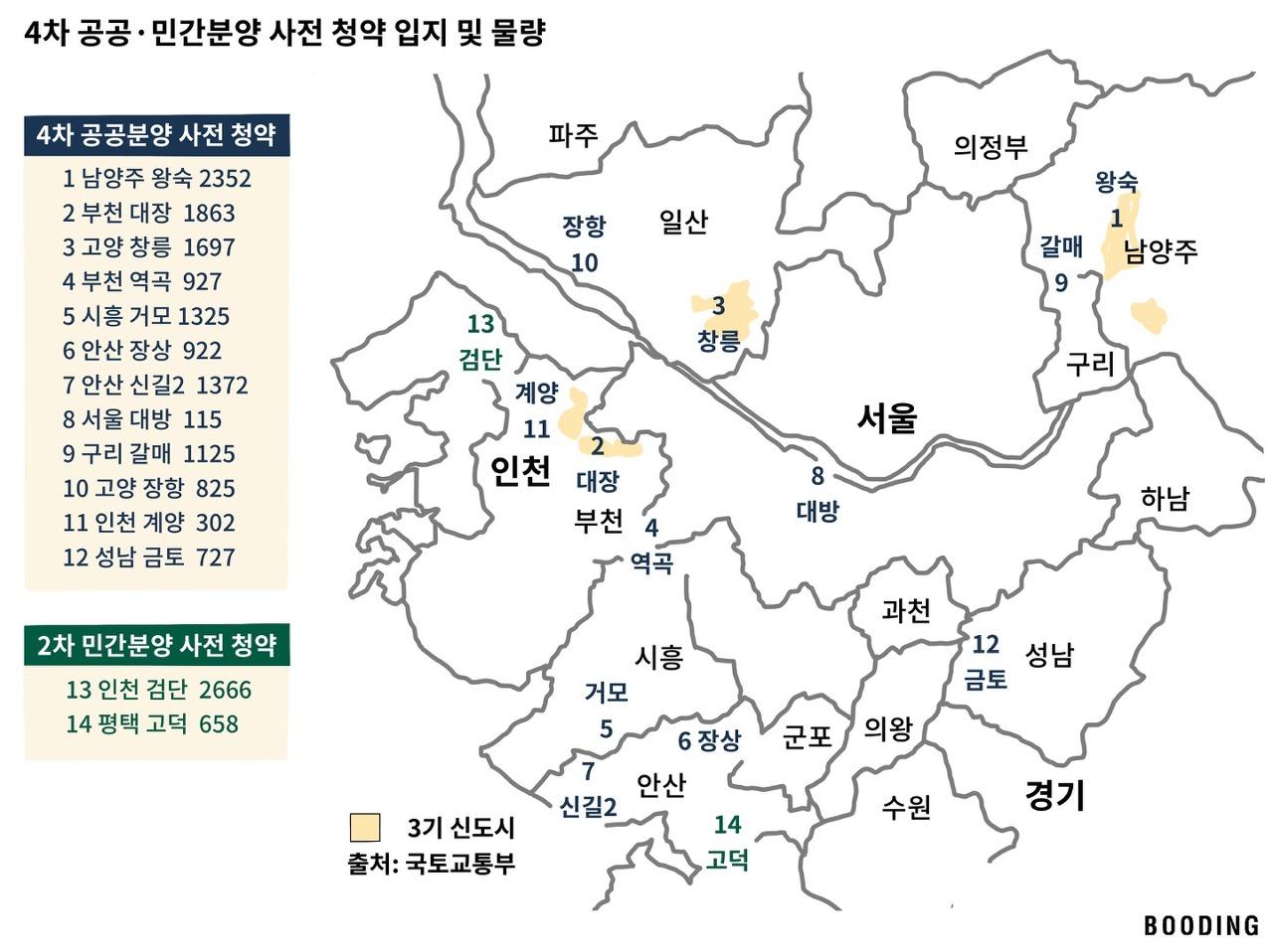 1월 10일부터공공분양* 4차 사전 청약 접수를 시작했습니다. 남양주 왕숙과 인천 계양, 고양 창릉, 부천 대장, 서울 대방 등 3기 신도시를 비롯한 12곳에서 1만3552가구가 나옵니다. 이게 끝이 아닙니다. 같은 날민간분양** 2차 사전 청약 접수도 시작했습니다. 인천 검단과 평택 고덕 등 2개 지구에서 3324가구가 나옵니다. 둘을 합하면 총 1만6876가구. 이번 사전 청약 이슈 중 헷갈리는 것만 모아 Q&A로 소개합니다. 사전 청약과 관련한 국토교통부의 보도자료 전문 보기는여기.