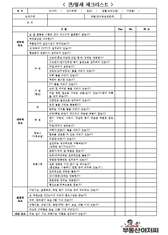 이번에 부동산아저씨가 좋은집 찾는 체크리스트를 알려주셔서 한 번 공유해본다.