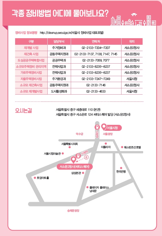 안내서는 25개 자치구를 통해 지역 주민들에게 배포되며, 서울시 전자책 홈페이지(ebook.seoul.go.kr)와 '정비사업 정보몽땅' 사이트(cleanup.seoul.go.kr)'에서도 다운로드 가능하다.