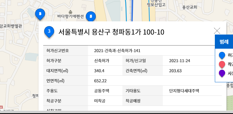 2. 노후도를 망가뜨리는 신축행위(지분쪼개기)를 미리 알아 볼수 있는 사이트인데 허가접수중인 사항을 미리 알아 볼수 있습니다. 허가 착공, 준공등 정보를 미리 알 수 있습니다.
