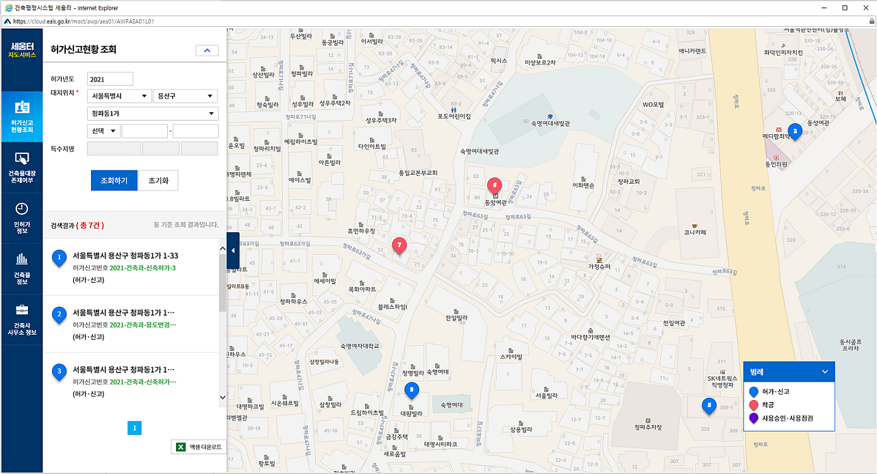 동단위로만 조회가 되니 저는 용산의 일부동을 조회해 보겠습니다.