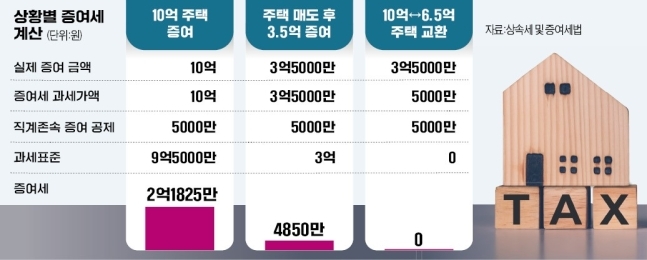 10억 주택 매도후 3.5억 증여했다면 증여세 4850만원 부과