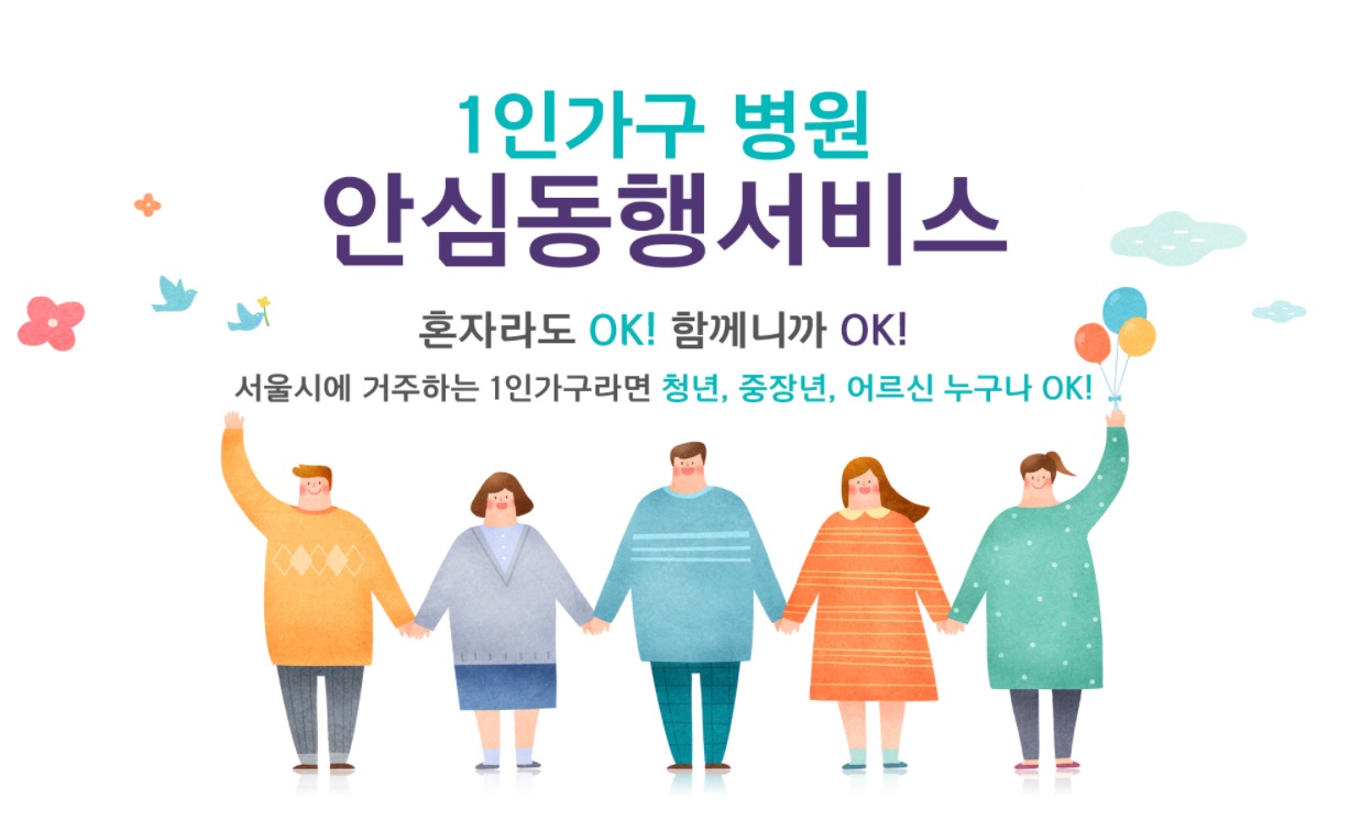 혼자 살아도 안전과 건강에 대한 염려가 없도록 관련 서비스가 나왔습니다. 아플 때 보호자로서 병원에 함께 가는 ‘1인 가구 병원 안심동행서비스’입니다.