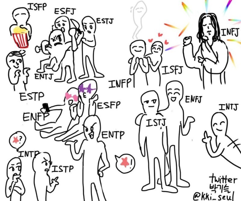 개인의 성격에 따른 유형을 외향형과 내향형, 감각형과 직관형, 사고형과 감정형, 판단형과 인식형 등 16개로 나눠 조합해 설명하는데요.