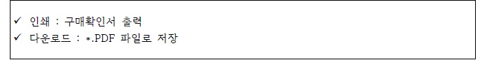 ※ 취소신청의 경우 발급된 구매확인서가 삭제되는 것으로 복원 불가능하므로 숙지 요망