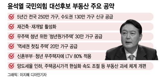 20대 대통령으로 윤석열 국민의힘 후보가 당선됐습니다. 그의 부동산정책은 집을 많이 짓는 것에 맞춰져 있습니다. 어마어마하게 많은 집을 지어 시장을 안정시킨다는 계획입니다. 특히 민간을 잘 활용해 양질의 집을 짓겠다는 전략입니다.