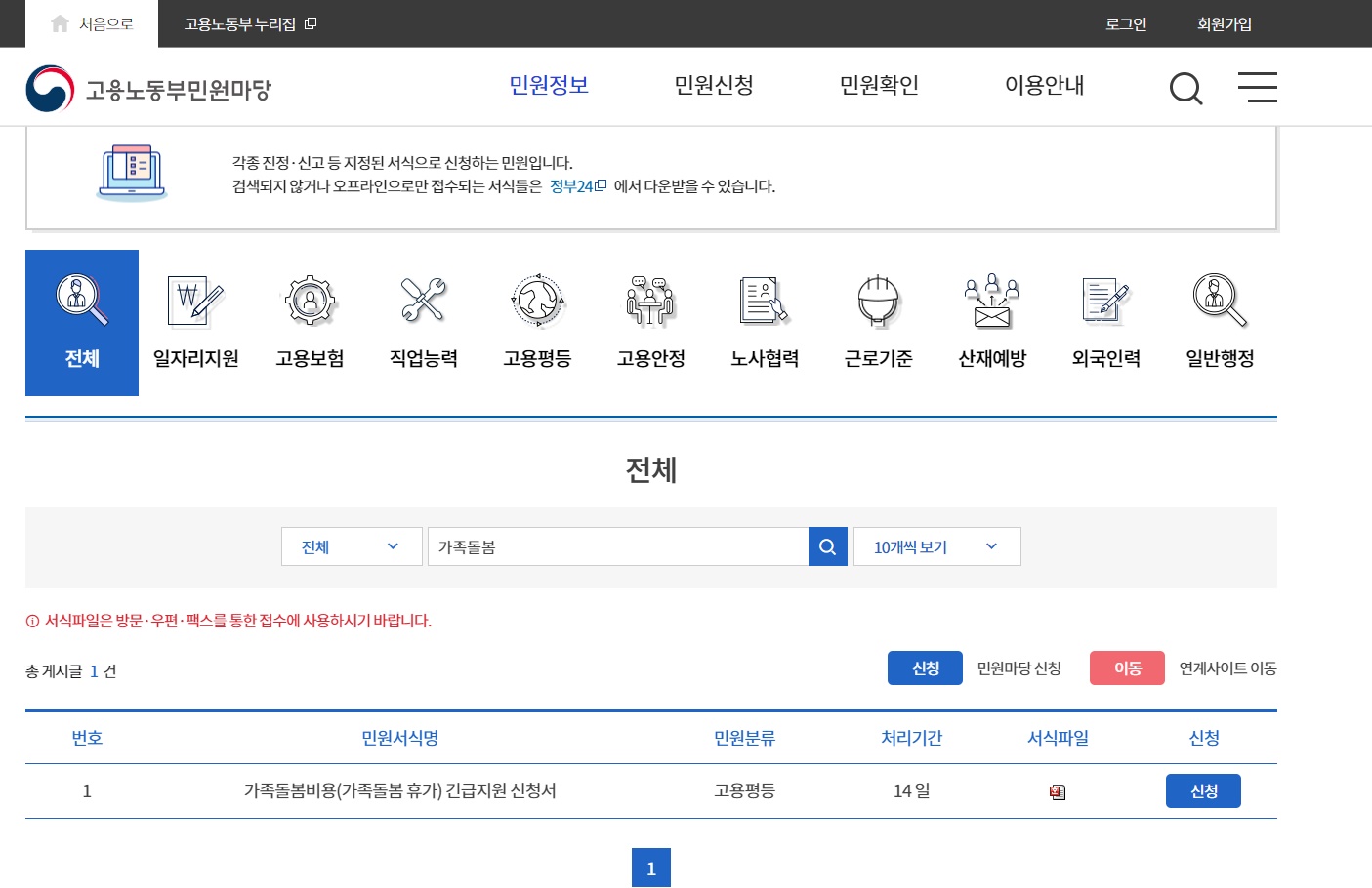 가족돌봄비용 신청 : 고용노동부 누리집(www.moel.go.kr) 또는 관할 고용센터 우편 등을 통해 신청할 수 있습니다.