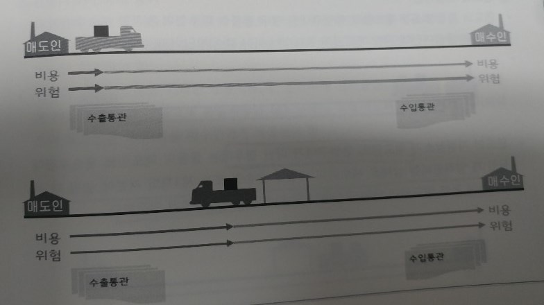 -인도의 지정장소가 매도인의 영업구내인 경우 : 물품이 매수인이 제공한 운송수다에 적재된 때 물품이전에 대한 매도인의 위험(파손이나 훼손)이 매수인에게 이전된다.