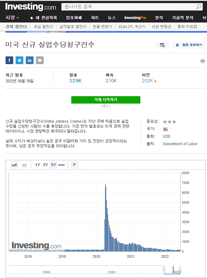 이때 실업률과 신규 실업수당청구건수는 기준금리 인상 여부에 중요한 고려 요소가 됩니다. 실업률이 낮고 신규 실업수당청구건수가 감소해야 경기가 충분히 회복됐다고 판단해 기준금리를 올릴 수가 있다.