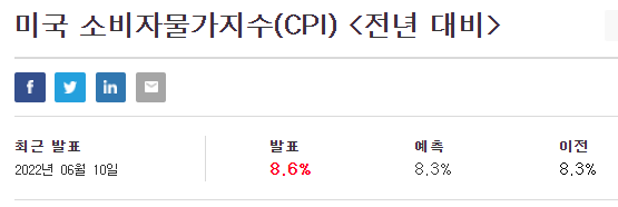 인플레이션 정도를 확인할 수 있는 경제지표는 매월 1번씩 발표되는 CPI, 소비자물가지수가 제일 대표적으로 통용됩니다. 미국 소비자들이 느끼는 물가 정도를 수치화해서 발표하는 것으로, 이를 통해 우리는 미국의 물가 상승이 어느 정도로 이어지는지를 알 수 있죠.