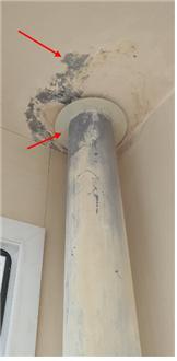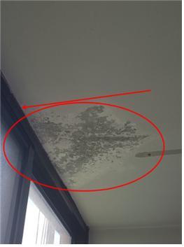 집을 확인할 때 상부가 사진처럼 물이 번져있으면 윗집에서 방수층이 깨져서 물이 튀는 것입니다. (곰팡이 뿐만 아니라 페인트도 같이 벗겨지는 경우가 습니다.)