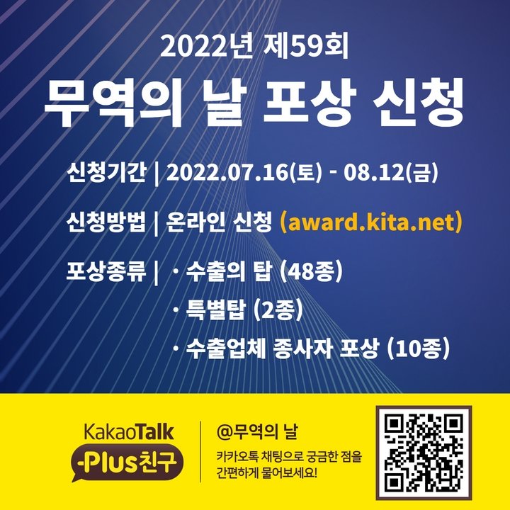 2022년도 무역의 날 수출의 탑 및 포상 신청접수가 7/16(토) ~ 8/12(금) 진행됩니다.