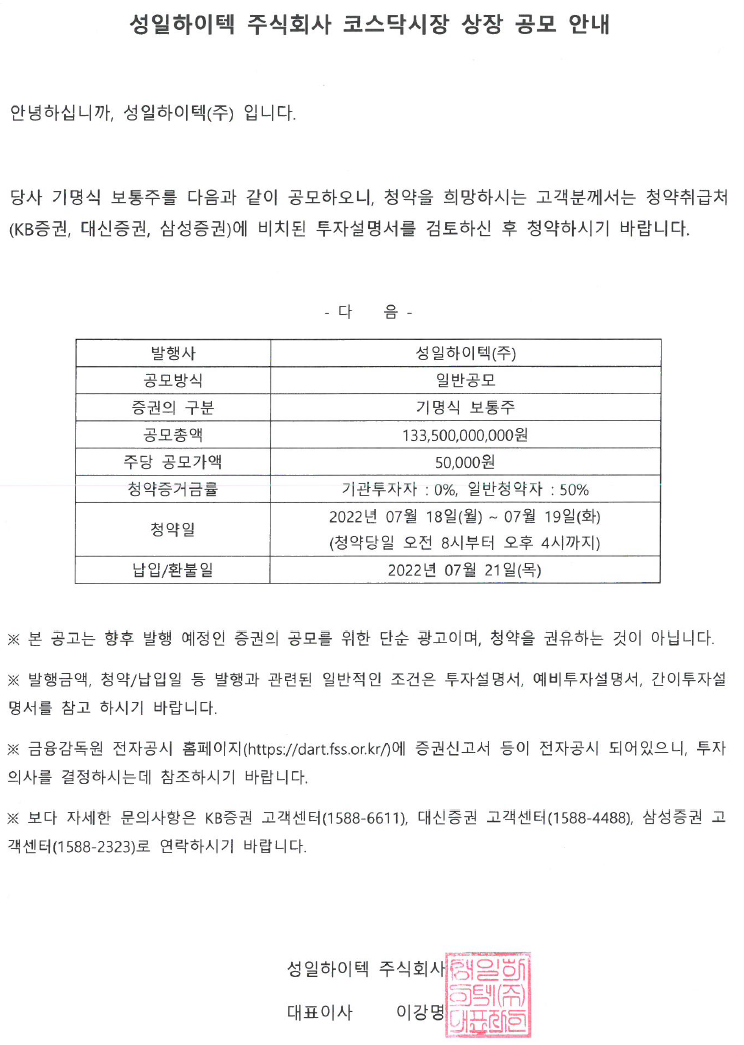 [주린이의 공모주] '역대 최고 경쟁률' 성일하이텍, 투자 포인트는? (inews24.com)