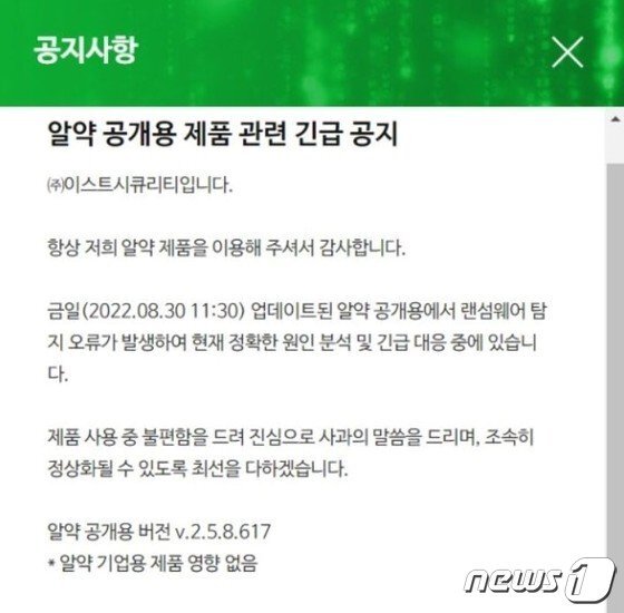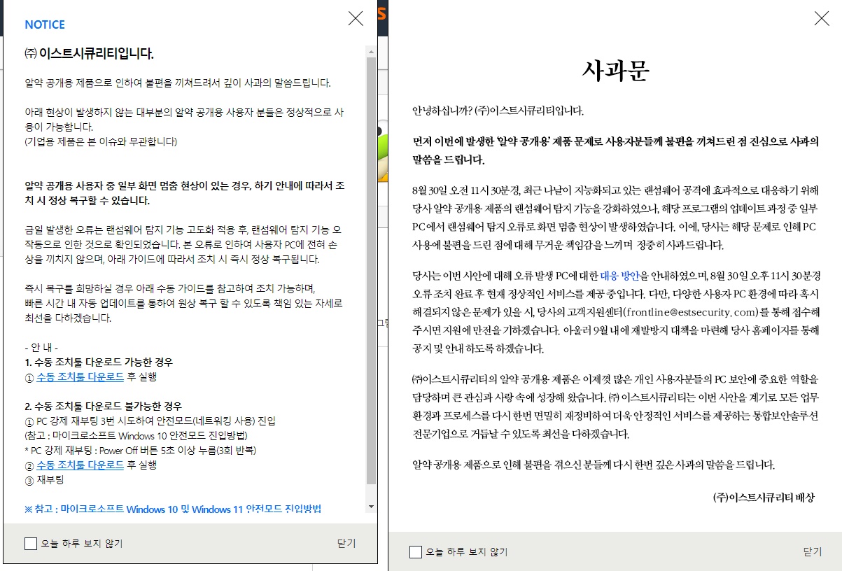 현재 이스트시큐리티 측은 오류 해결을 위한 복구 도구(툴) 배포를 준비중이다.