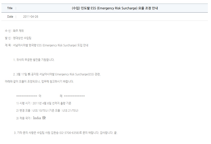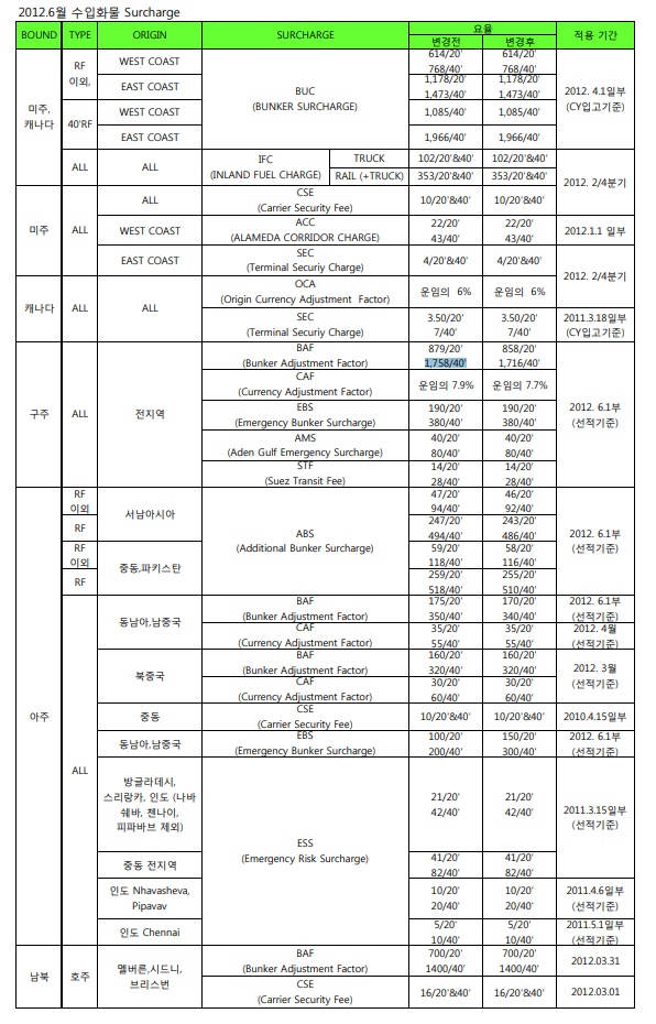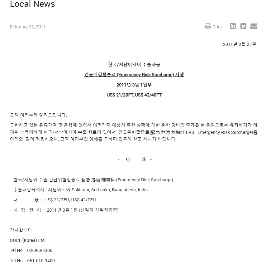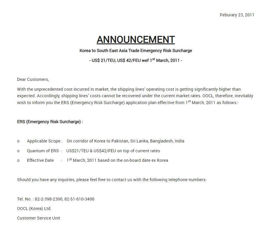 예전 공지지만 OOCL의 ERS 시행한다는 내용