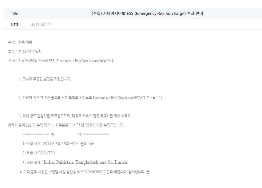 ERS : Emergency Risk Surcharge (긴급위험할증료)