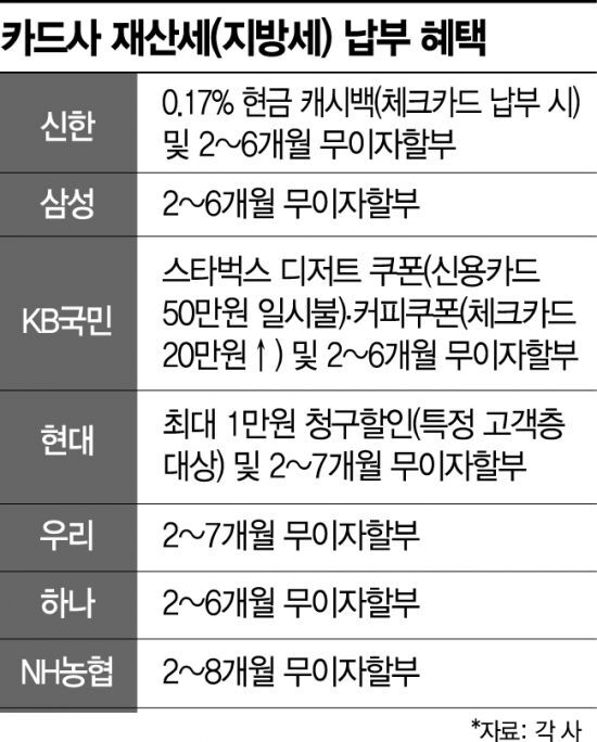 이참에 재산세 카드로 결제시 각 카드사별로 받을 수 있는 무이자‧경품‧캐시백 혜택에 대해 총정리해보았다.