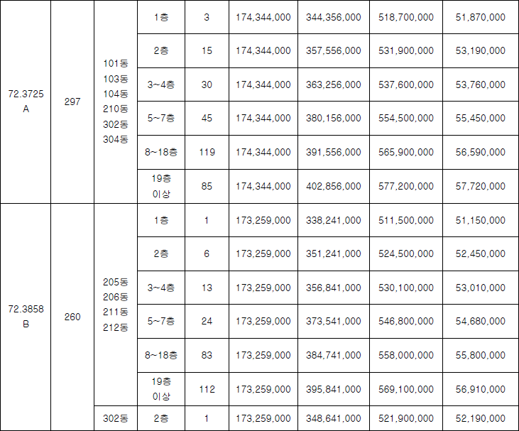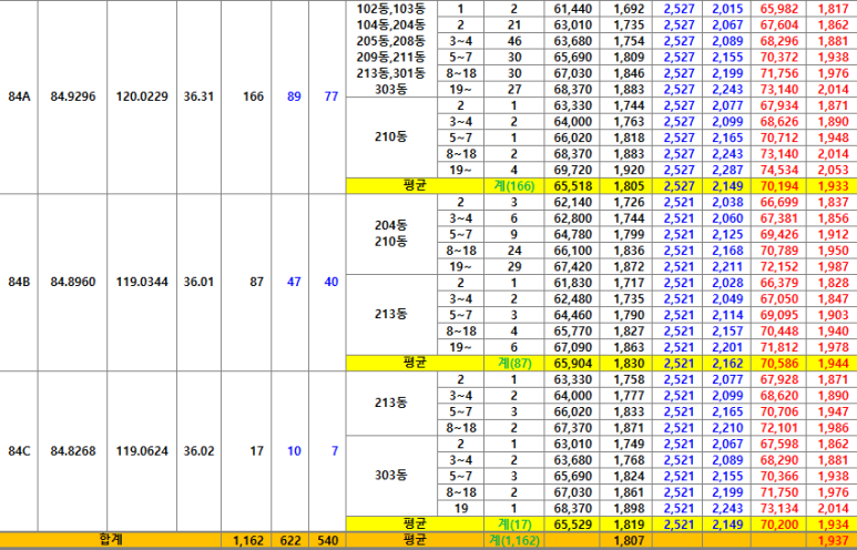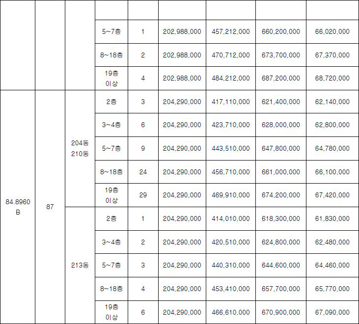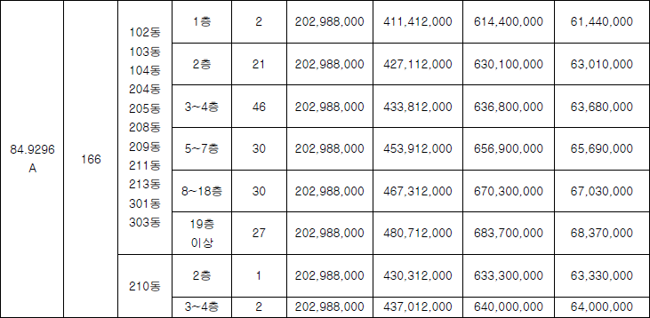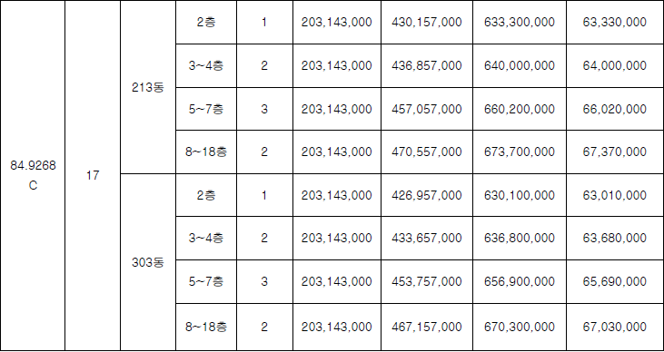 △84㎡ 6억5,600만원(270가구) 등이다.