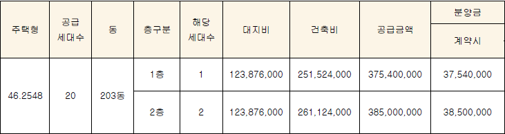 3.3㎡ 분양가는 평균 1,853만원으로 전용면적별로는