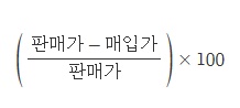 = (2500-1932*1.1)/2500 <=판매가에서 매입가를 빼면 이익인데 판매가에서 이익이 차지하는 비율을 구하는 거니까요. 1.1 곱하는건 부가세 포함 안된거 계산