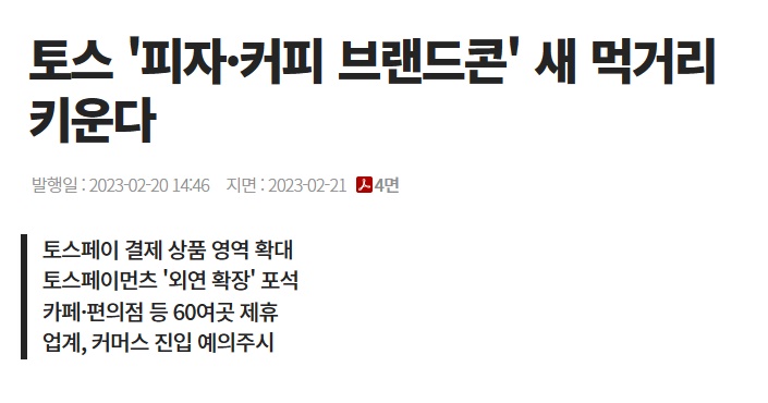 토스 '피자·커피 브랜드콘' 새 먹거리 키운다 - 전자신문 (etnews.com)
