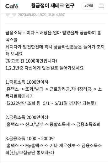금융소득 2천만원 미만자 신고 내역 조회 (2019.05.01) | 종합소득세 절세 전문 세무사 (taxtip.co.kr)
