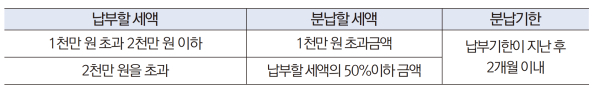 ◆ 분할납부(자진납부세액이 1000만원을 초과하는 경우)