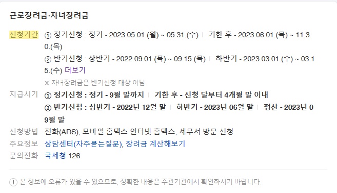 5/1일부터 국세청 홈텍스 홈페이지에서 근로장려금 신청을 받고 있다.